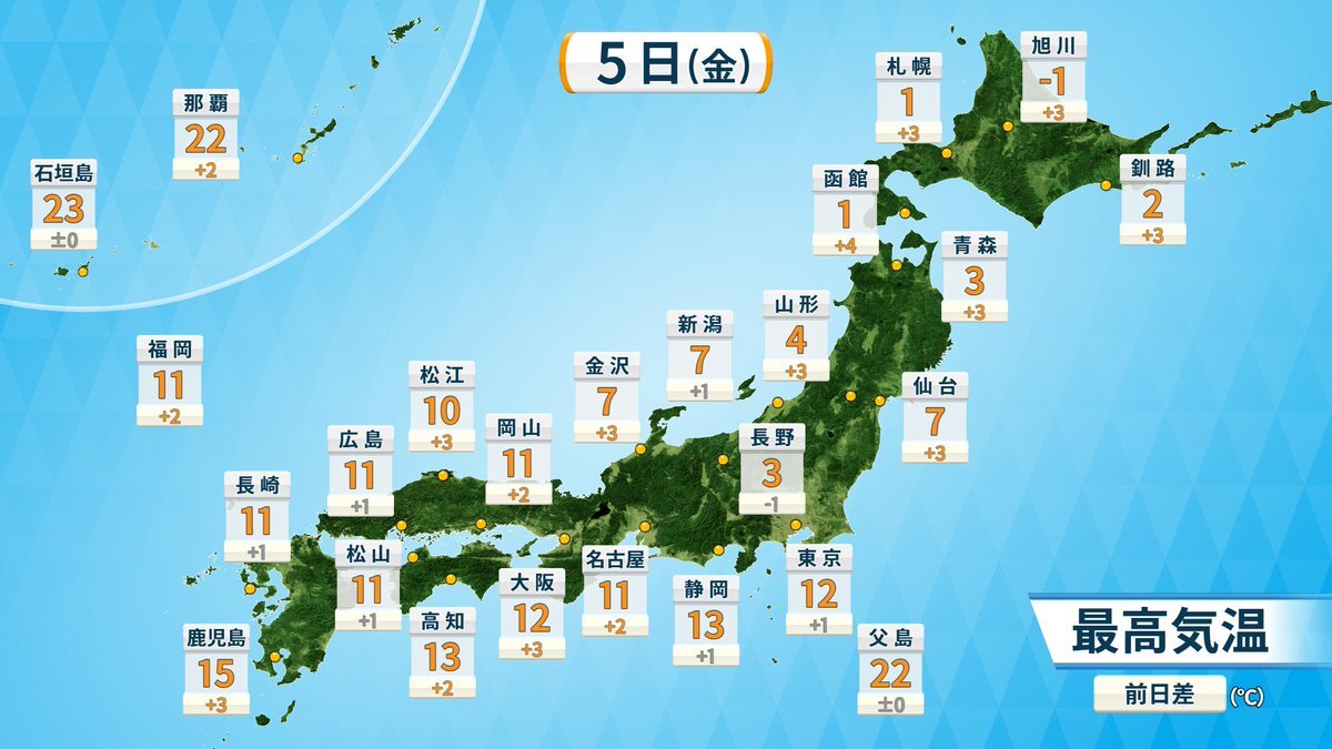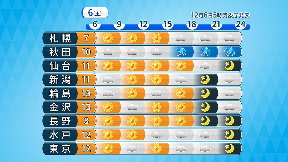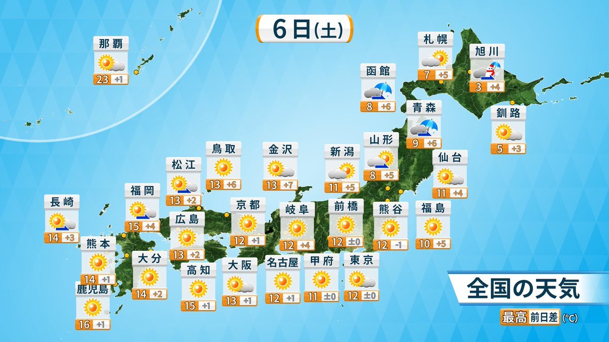 12月最初の週末 西日本~東北南部の太平洋側を中心に晴れ 昼間は暖かく一日の寒暖差は大(TBS NEWS DIG Powered by JNN) news.yahoo.co.jp/articles/f5869…