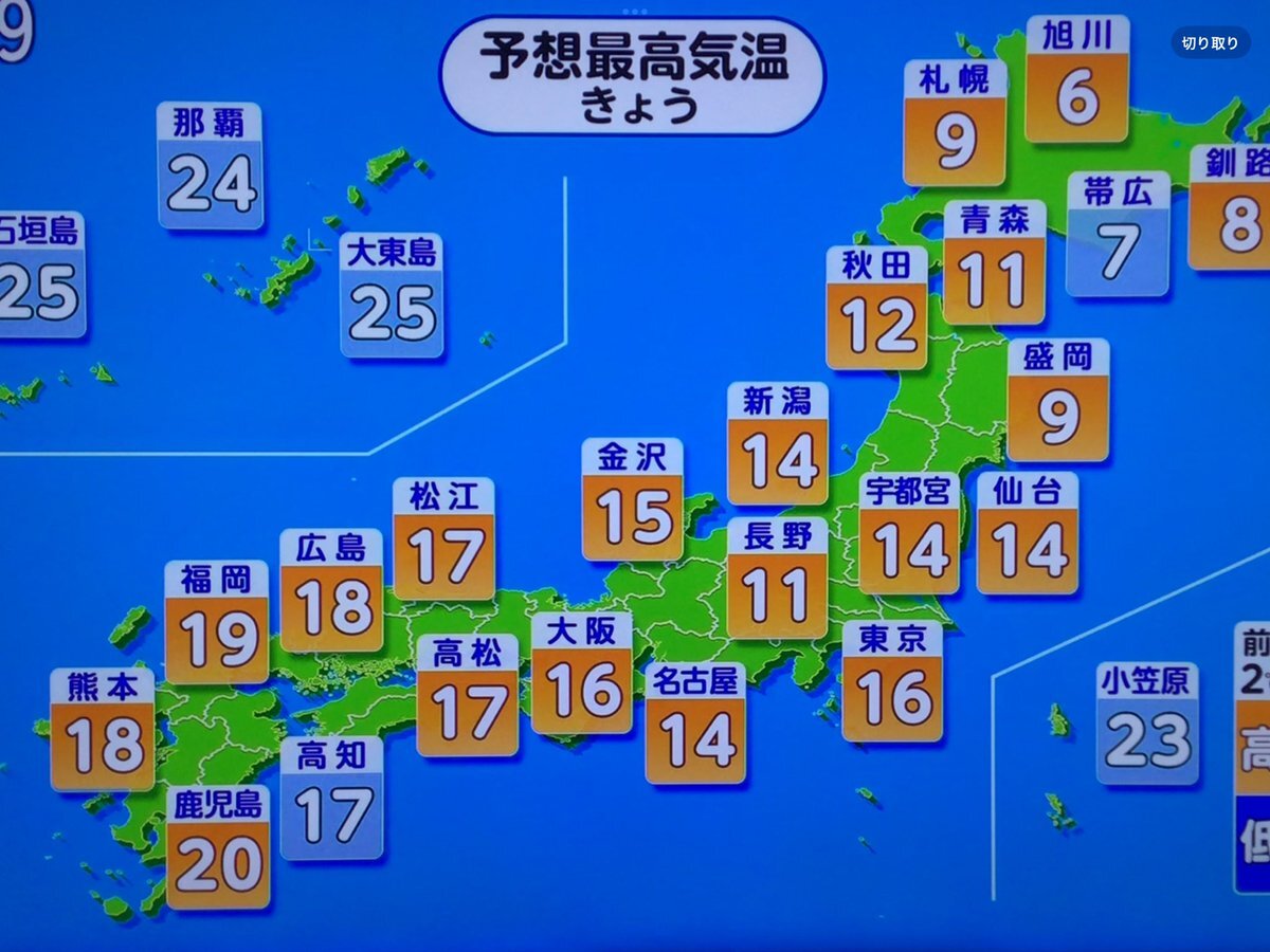 東北南部、関東で冷え込み: 東北南部(宮城、山形、福島)、関東では、風が弱く晴れて放射冷却が強まり気温の下がった所が多く、8時までの最低気温は、平年並み~低い所が多くなりました。 kion-web.com/japans_tempera… pic.x.com/pUg5OpnLC3