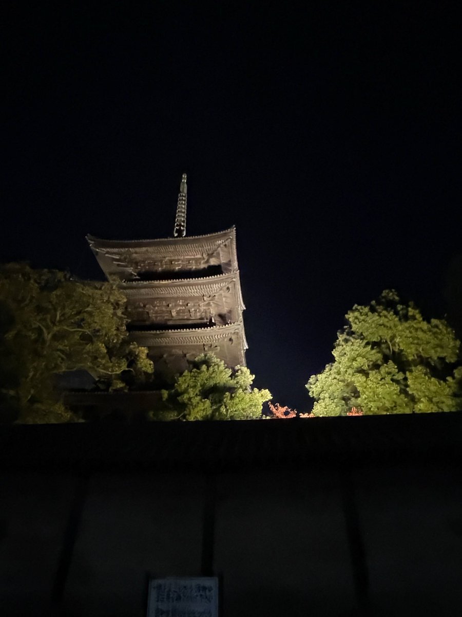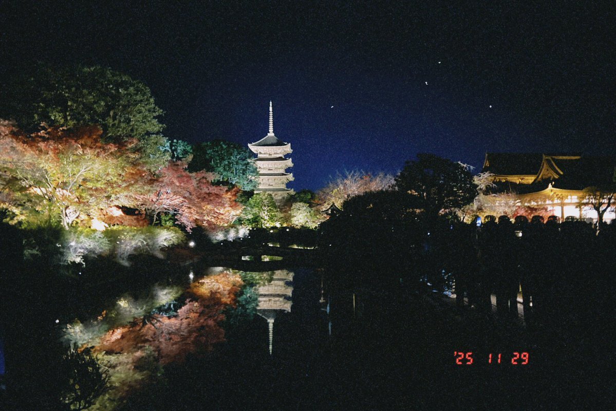 夜は友達に聞いた東寺への紅葉ライトアップへ 水面に写ってめちゃくちゃ綺麗だった!!! 落ち葉も凄かったから昼も綺麗だったんだろうな〜 通りすがりのカップルが「桜も綺麗」って言ってたから次は春に来てみたい✨ pic.x.com/L0UfsL6kE3