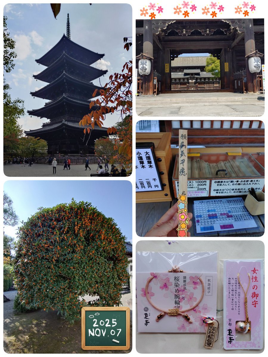 東寺方面に用事があったのでお参りしてきました 大昔のバイト先の近くにあって、東寺の横歩いて通勤してました。懐かしやー(^^)💓 護摩木にはいつものお願い事を🙏 可愛いお守りもget!「桜染め腕輪守り」は東寺にある桜の葉で染めてあって、その工程でさくら色になるそうです🌸 pic.x.com/BqTiFEZ4hU