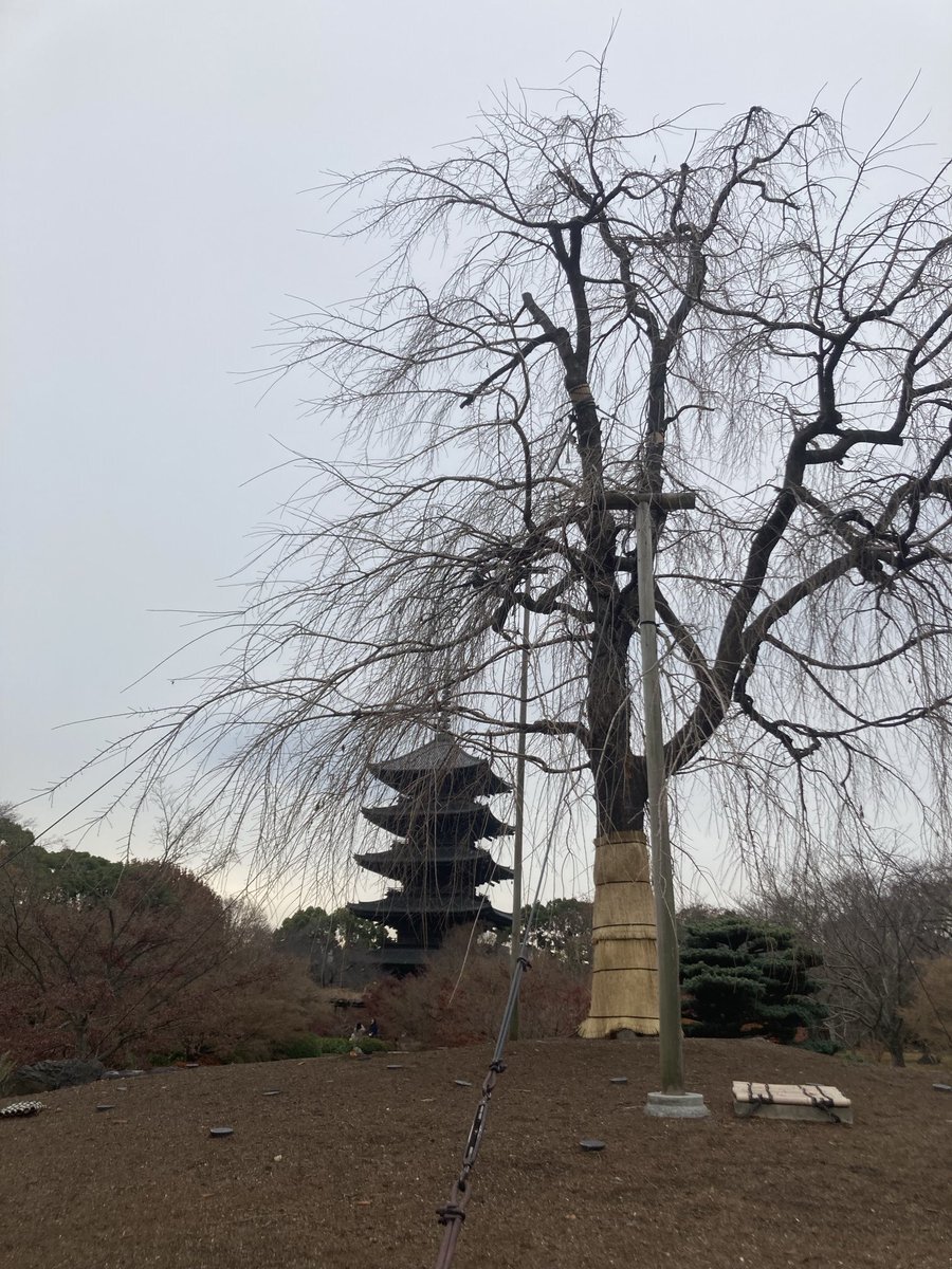 ちなみに東寺の入り口に植えられた一際目を引くこちらの不二桜は、樹齢130年を超える紅枝垂れ桜で、岩手の盛岡から秋田、三重を経て、2006年に東寺へ移植されたものだそうです。重量は10t程度にもなったとか! これほどの巨木を移植する技術に驚きました。 (山田造園さんのHPより) pic.x.com/mUgMhO6Uys