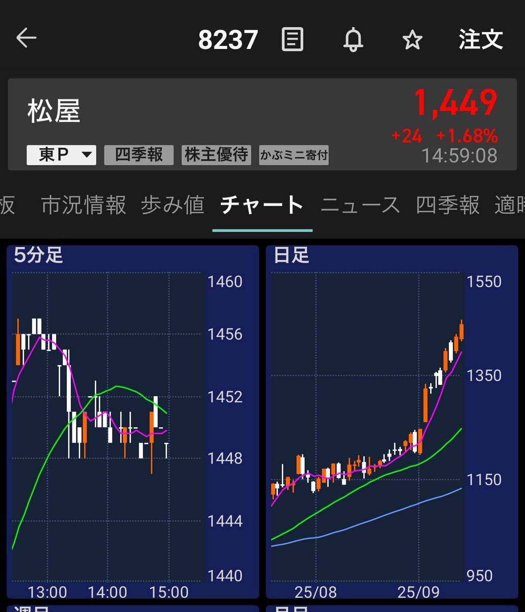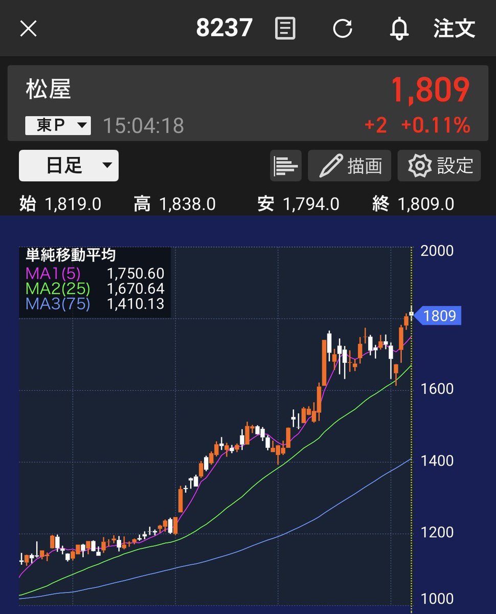 松屋(百貨店)がずっと上がり続けてる 優待でいるしホールドしてるけど、なんでw 次の株主優待の権利確定は2月だよ pic.x.com/EW6XuzwAcv x.com/miku919191/sta…