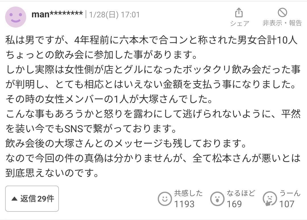 返信先:@pctink2025他1人 ちなみにそいつは松本人志信者で過去に余計な発言で二度炎上 専用スレまで立てられるお馬鹿さんです ①私のデマ流したの誰?→白マスクがヤフコメのデマを真実とし拡散してる ②拡散ポスト(削除済) ③元のデマ(ヤフコメ) ④炎上(URL参照)しIDとサムネ変え逃亡 bakusai.com/thr_res/acode=… pic.x.com/fBA5NhchaZ