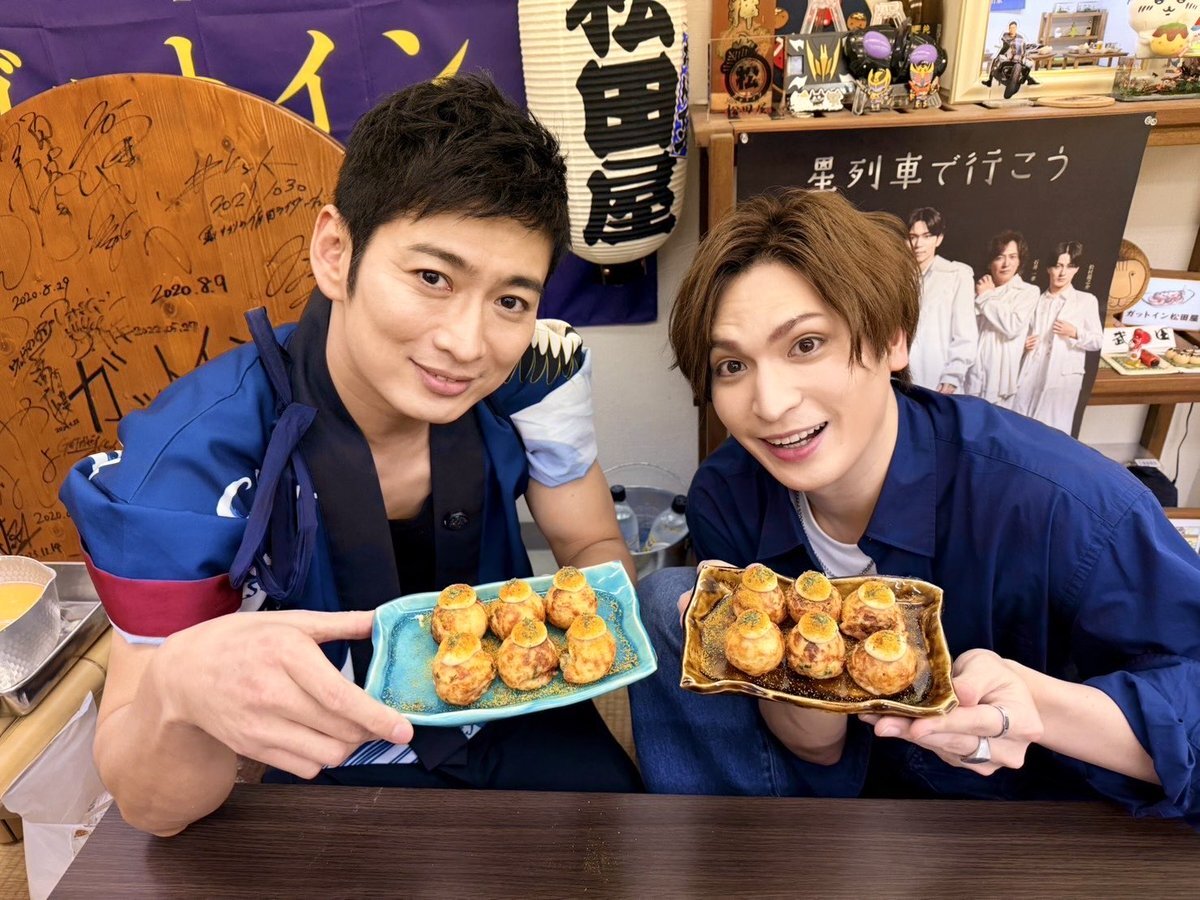 楽しみすぎます✨🧡💜🌟 貴重なマチネ後のお時間にゲストありがとうございます✨🐙🥹 #ガットインTV vol.123 キリ番✨いちにさん❣️回🌟 #松田悟志 さん✨たこ焼きトークバラエティ🐙 #小波津亜廉 さん✨初ゲスト回✨ #星列車で行こう 公演日アフタートーク❤️🔥 x.com/alleeeeeen_k/s…