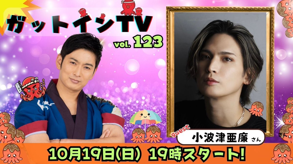 いよいよ本日このあと19時からですよー👶✨ たこ焼きトークバラエティ『松田悟志のガットインTV』、ゲストは舞台『星列車で行こう』で共演中の小波津亜廉さんです✨ たこ焼き食べつつ、いろんなお話をしながら亜廉ちゃんの人生に迫ってくような配信にしたいと思います✨✨✨ live.nicovideo.jp/watch/lv348946… pic.x.com/JenlUgl2gC