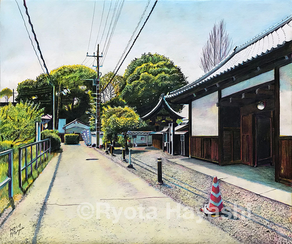 日本瓦のある風景 第4回 春の路 清瀬市下宿/色鉛筆(カリスマカラー)/2019年1月/F8(muse TMKポスター紙) #色鉛筆画 #林亮太 #風景画 #5色描画 ryota884.thebase.in/items/75054403