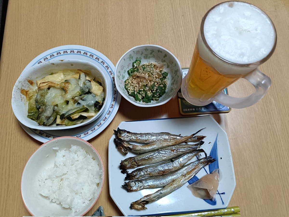 今日もお疲れ様でした🙇 夕食は好きな順に、🍺各酒、小松菜のグラタン、ししゃも、オクラのかつおかけ、生姜、🍚😋 大谷翔平3年連続4度目全て満票で両リーグ受賞は初が取れたのは良かったですが、THE柳沢慎吾劇場一般発売すっかり忘れてて気付いた12時過ぎに残ってるはずも泣く😭も、祝杯🍻😍(笑) pic.x.com/3eRa5I3lyQ