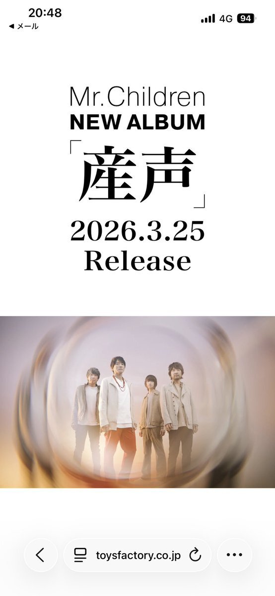 Mr.Children ニューアルバム「産声」2026/3/25発売 ⏬Amazon amzn.to/3MPobCj ⏬楽天 a.r10.to/hkpaq6 全国ツアー開催も決定! 桜井和寿/田原健一/中川敬輔/鈴木英哉 #ミスチル 【PR】