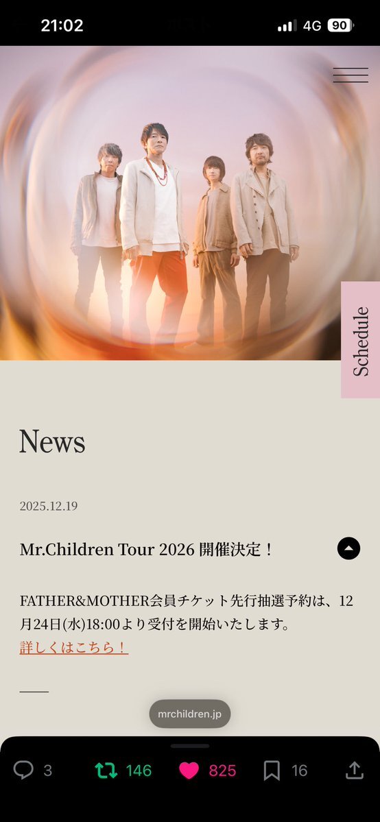 ミスチルのライブ何処にするか迷うなー、クリスマスイブからファンクラブ先行だからじっくり考えよう😋しかし4人の写真素敵✨😍#MrꓸChildren #桜井和寿 #産声 #ライブツアー pic.x.com/FEubG8E6Pl