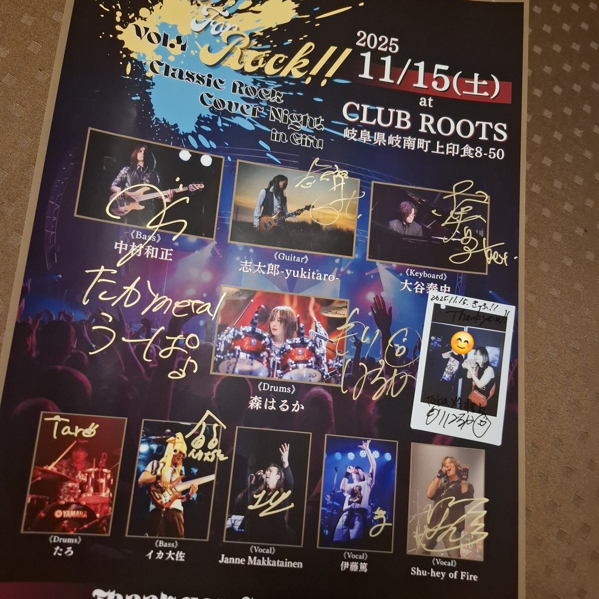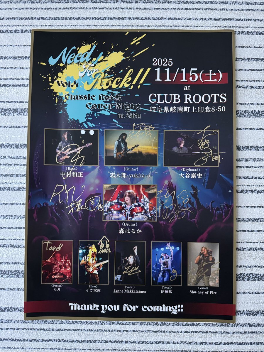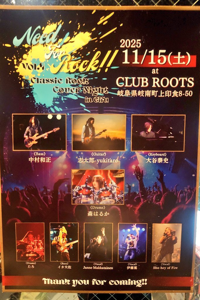 本日の現場②🔥でした🖐️ Need For Rock!! 主催🎸志太郎"yukitaro" 岐阜CLUB ROOTS セットの8割は自分も多少なりともコピーしたことがある楽曲で楽しめた🤘 🥁森はるかもパワフルなドラミングやっぱり凄いね💪 pic.x.com/xAz693LYIr