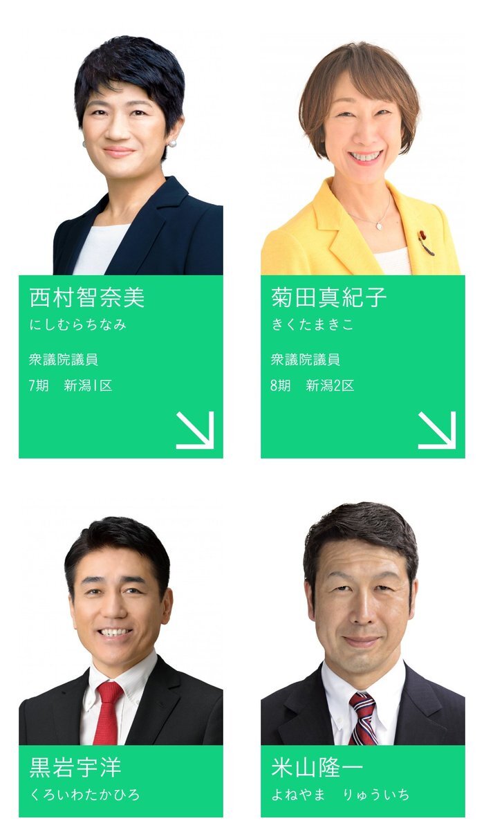 素晴らしいポンコツが集まっている新潟県の立憲民主党議員です 左から 森ゆうこ→言わずと知れたラスボス 黒岩たかひろ→総理朝3時レク発言、久兵衛 西村ちなみ→貴重な時間なのに15分鹿発言 菊田まきこ→逆に今まで何をしたのか? 米山りゅういち→お金渡しSAY交渉、SNS職人 pic.x.com/UiPP70llv2
