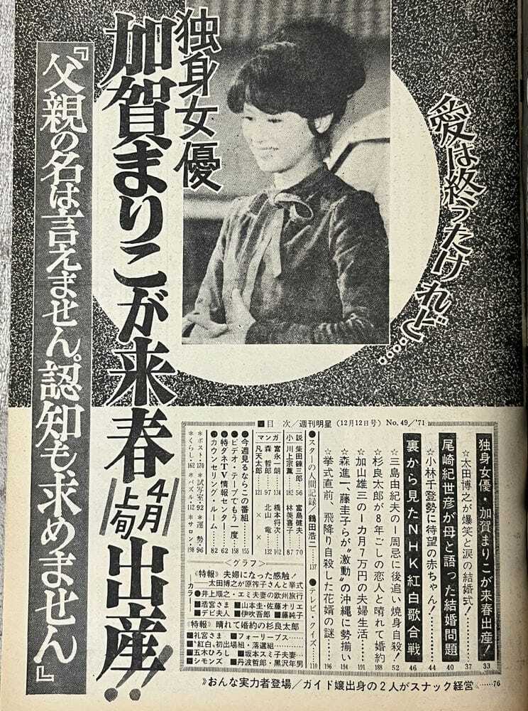 『週刊明星』 No.49 1971年12月12日号 通巻699号 集英社 表紙:渡哲也、小山ルミ 裏から見たNHK #紅白歌合戦 渡哲也加賀まりこ 尾崎紀世彦 杉良太郎 加山雄三 森進一 藤圭子 通販🎤 magazine.sangatukosho.com/shop/products/… pic.x.com/JL4q7gLjjd