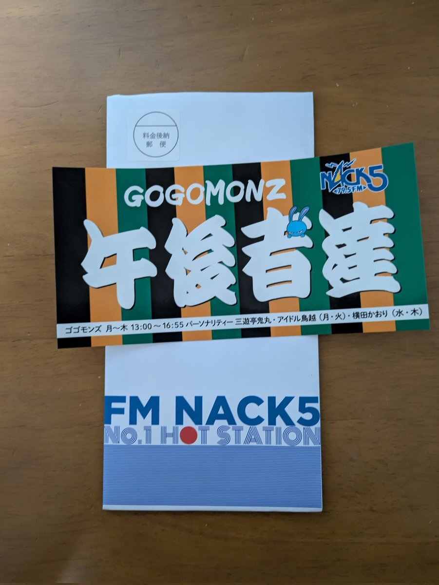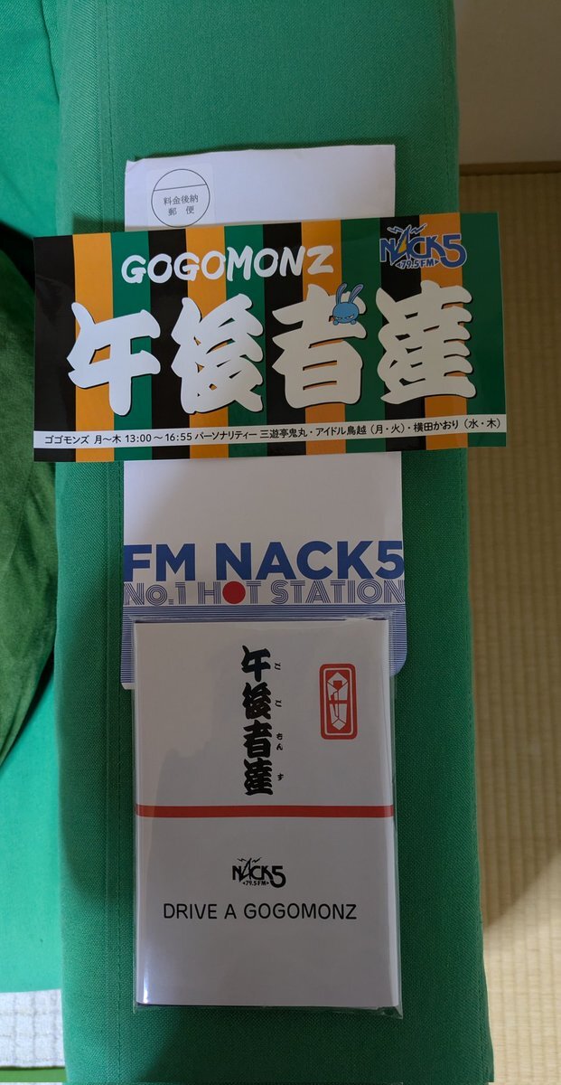 今日は、 「鬼丸・横田かおりのサイン入りGOGOMONZステッカー」を抽選で10名様にプレゼントします。 受付は、今日の午後4時20分までです! nack5.co.jp/message/3448/