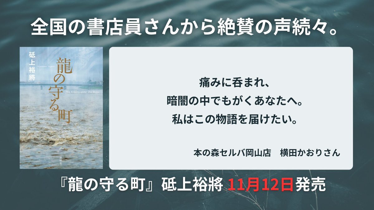 【本日発売】 『龍の守る町』 全国の書店員さんから感想をいただきました。 毎日少しずつご紹介します。 本日は、本の森セルバ岡山店(岡山県)の横田かおりさんからのコメントをご紹介します。 #龍の守る町 pic.x.com/iE9yPta0j6