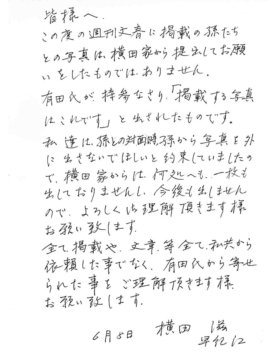 返信先:@aritayoshifu有田チェンチェイに対する横田滋さんの不信、疑念の思いが端的に込めらている、横田滋さんの有名な直筆の手紙、それでも懲りずに厚顔にも横田家を利用する有田チェンチェイ、非道な手口もたいがいにしないとイケないと思いますよ。 pic.x.com/McxjpzUidp