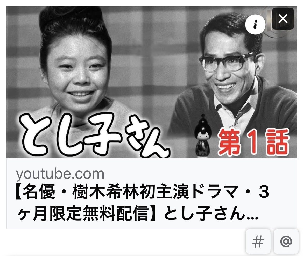 樹木希林さんの初主演のドラマなのだそうです。この頃からあまり変わっていらっしゃらないようにも思いますね😊 「【名優・樹木希林初主演ドラマ・3ヶ月限定無料配信】とし子さん 第1話」 youtu.be/n6G5MiHXy9A?si…