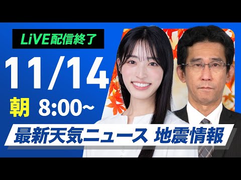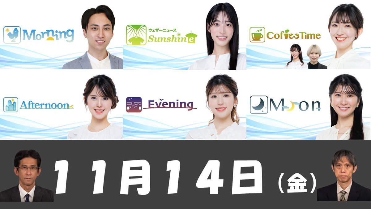 【11月14日(金)ウェザーニュースLiVEラインナップ】 05:00〜 モーニング(福吉 貴文) 08:00〜 サンシャイン(松本 真央) 11:00〜 コーヒータイム(江川 清音) 12:00〜 【気候変動番組】100年天気予報~COP30って何?地球の未来、ブラジルで話しています~(魚住 茉由・吉良 真由子) 14:00〜 pic.x.com/4csECVLlj6
