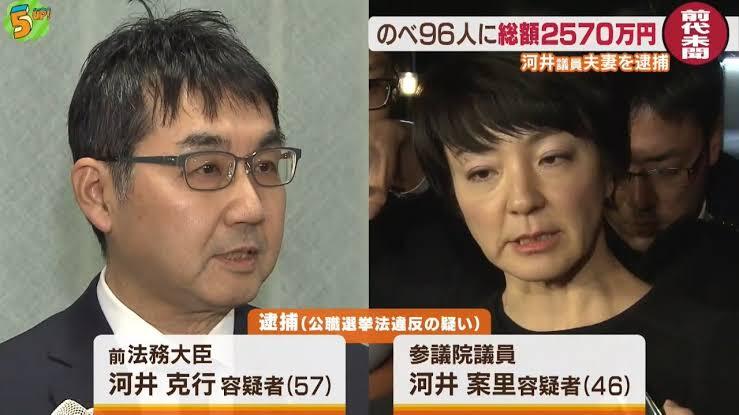 返信先:@mb5ule2「立候補していた自由民主党の河井案里を当選させる為、その夫であり自由民主党の衆議院議員でもある河井克行が、案里と共謀して大規模な買収行為を行った」 当選後、河井夫妻は 「公職選挙法違反の容疑で東京地方検察庁特別捜査部によって逮捕」 wiki