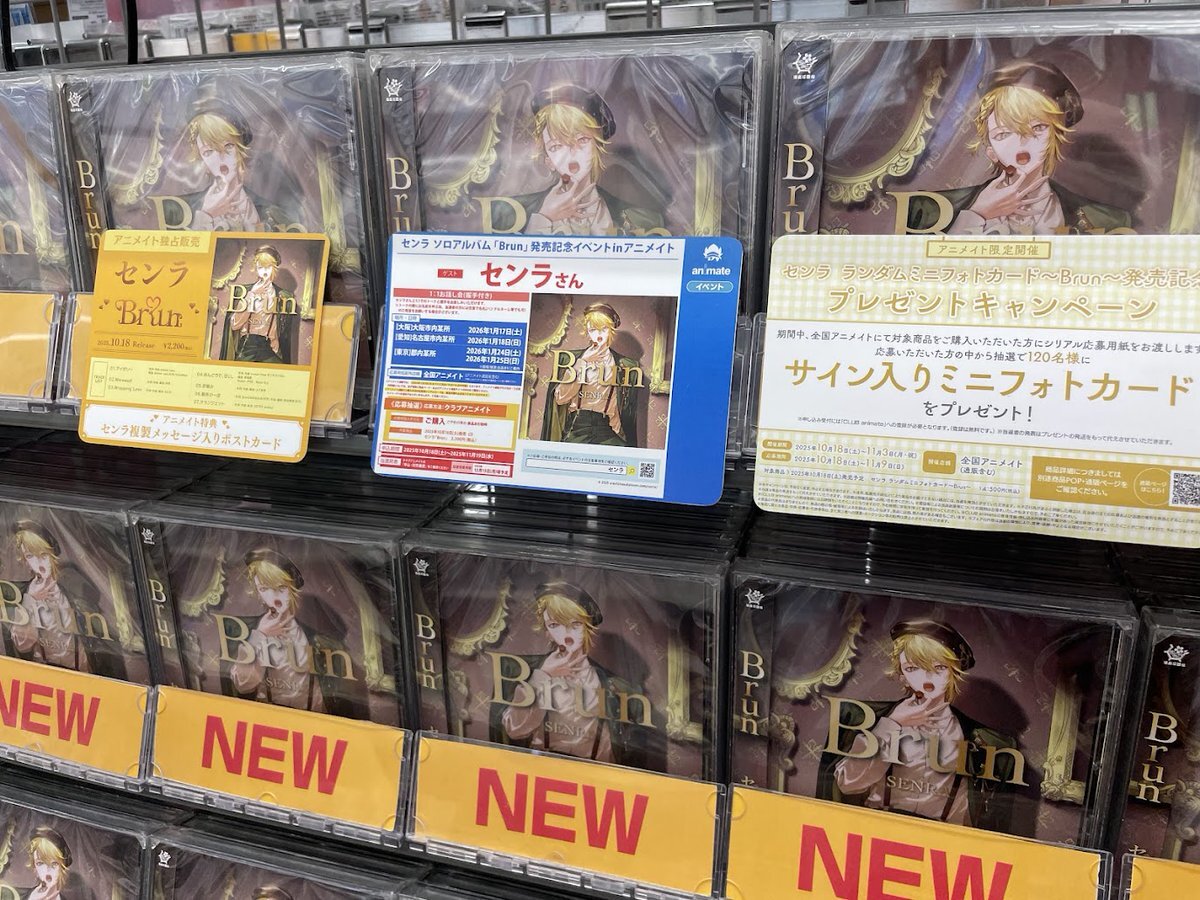 【CD新譜情報】 CD『センラ/「Brun」』 ✨好評発売中ナノ✨ 🎁アニメイト特典 ✅センラ複製メッセージ入りポストカード 発売記念イベントも開催決定🎉 詳しくは下記POPをチェック✨ #浦島坂田船 #センラ pic.x.com/WBuAE0XeNL