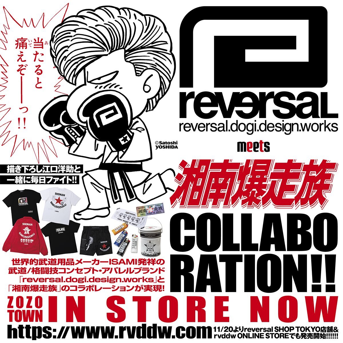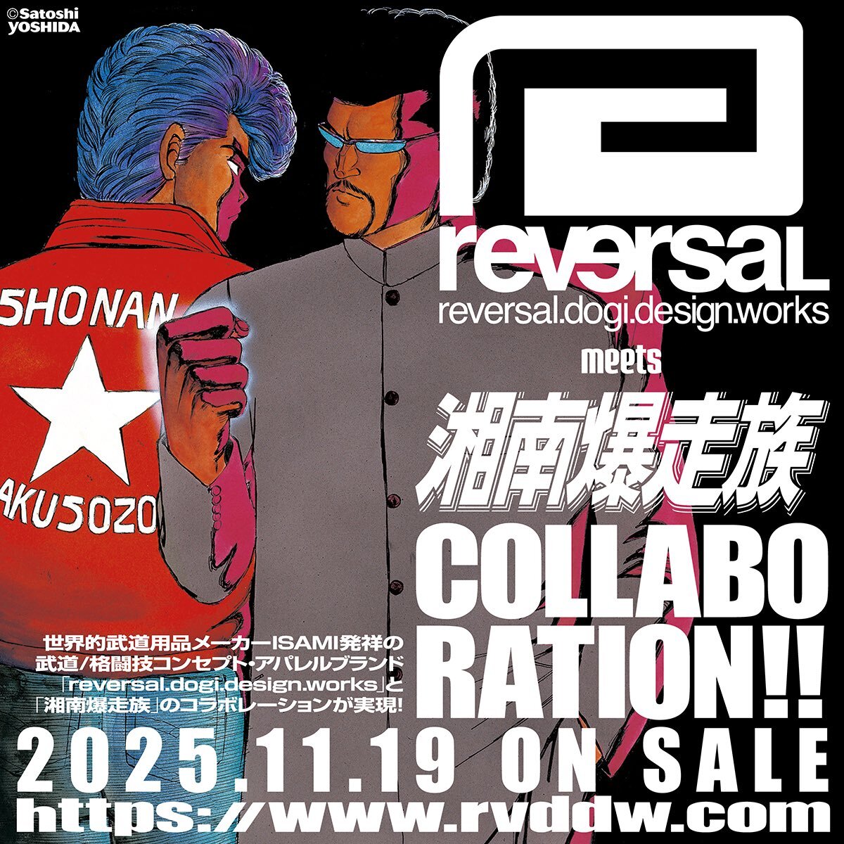 世界的武道用品メーカーISAMI発祥の武道/格闘技コンセプトアパレルブランド「reversal.dogi.design.works」と湘南爆走族がタッグ結成!闘う男のアパレル&グッズが明日11/19より発売!! rvddw.com #湘南爆走族 #湘南爆走族ファーストフラッグ #湘爆 #吉田聡 #rvddw #reversal #リバーサル x.com/rvddw_official…