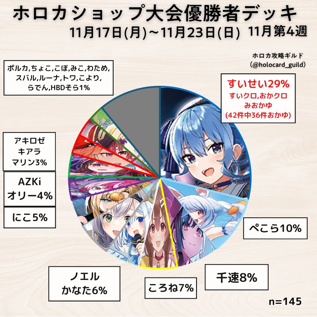 #ホロカ ショップ大会優勝情報🏆 ✅土日での千速とにこの勝利報告複数あり! ✅ブルームカップ1週間の優勝がすべて推しすいせいのおかゆへ 先週のブルームカップは推しすいせいのおかゆの優勝とベスト8の割合が過去1高くなりました。