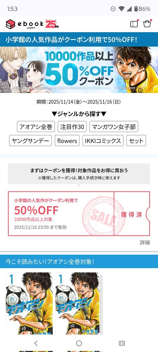 小学館の漫画50%オフクーポンやってるんですって 小学館には灼熱カバディという漫画があって大変オススメなのでこの機会に是非どうぞ ま、騙されたと思って pic.x.com/bXRfzYFcIh