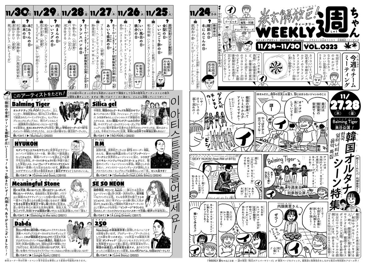 WJ52◆ 少年ジャンプの巻末コラム「WEEKLY週ちゃん」。今週は! \韓国オルタナシーン特集/ 細野晴臣さんの楽曲「熱帯夜」リイマジンド・トラック発表も話題、今週来日予定のBalming Tigerをはじめ、韓国のオルタナ系がアツい! そこで!気になる8組を内畑美里さんにナビゲートいただきました🔥✅ pic.x.com/BNBc8vTEhZ