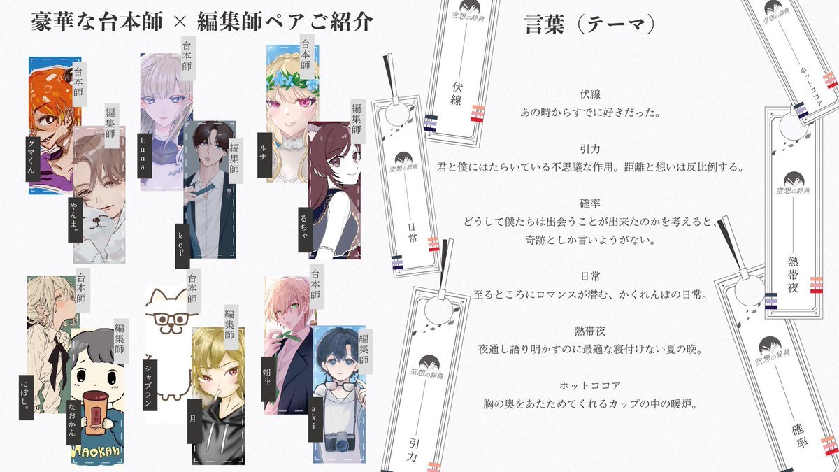 今週末はこちらの企画!! 台本 朔斗✖️編集 𝘢𝘬𝘪 <朱輝> . テーマ「熱帯夜」 素晴らしい演者の方々と共にお送りします!! お楽しみに! 11/29 20:00 李枠 お待ちしています!! pic.x.com/kPiJBCT8UK