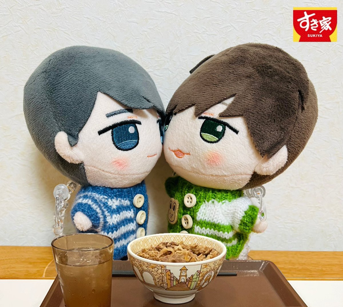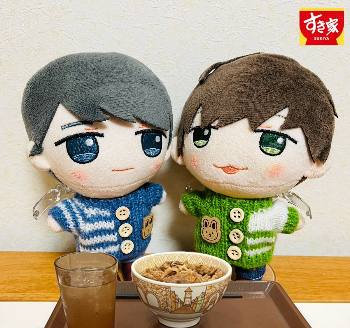 #すき家 #いい推しの日 推しぬいの牧春ちゃんがすき家に行ってました╰(*´︶`*)╯♡ 💙はい あーん 💚んー おいひい pic.x.com/qAENHgABHI x.com/sukiya_jp/stat…