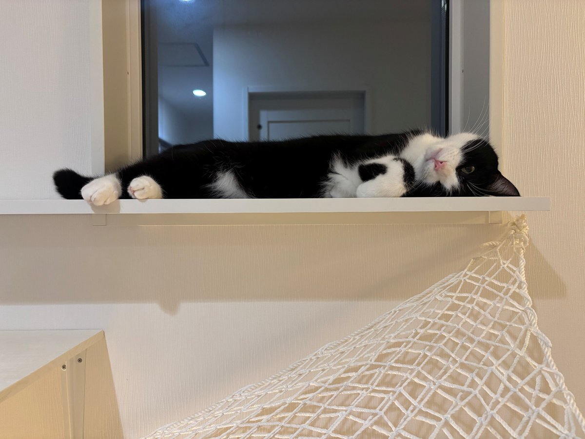 🐾吹き抜けになっている部分に新しくキャットウォークを設置しました!🐾 落ちたら怖いのでネットも…😂🙏 今まで悩んでいたペットドアも注文したので、どんどん家が仕様になっています💓🐈‍⬛ ※この首をかしげるポーズは甘えモードな時です🤭 pic.x.com/1RJEVIhkNH