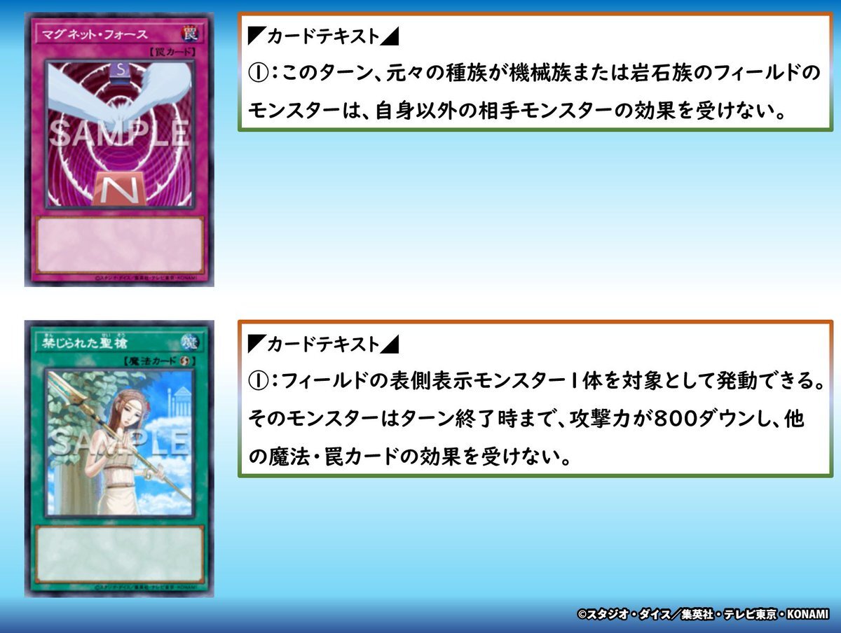 ◤❓Q&A考えてみよう🤔◢ 「マグネット・フォース」が適用されているターンに「禁じられた聖槍」を発動した場合、そのモンスターはモンスターの効果を受けるようになりますか❓ ✅回答 db.yugioh-card.com/yugiohdb/faq_s…