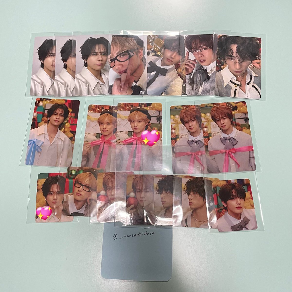 返信先:@__azarashidayo他1人検索より失礼します。理人くんのpresentトレカ3枚・cakeセルカ2枚・holidayセルカ1枚・holidayミニトレカ1枚の合計7枚所持しております。画像💖4枚と郵送交換可能でしょうか。ご検討よろしくお願いします🙇 pic.x.com/Mz916nYD25