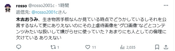 木古先生、「生き物を虐待している」じゃなくて「生き物苦手板のグロ画像を無断転載して初心者いじめでイキる」だから倫理的瑕疵はそのままにダサさだけが底を更新してる
