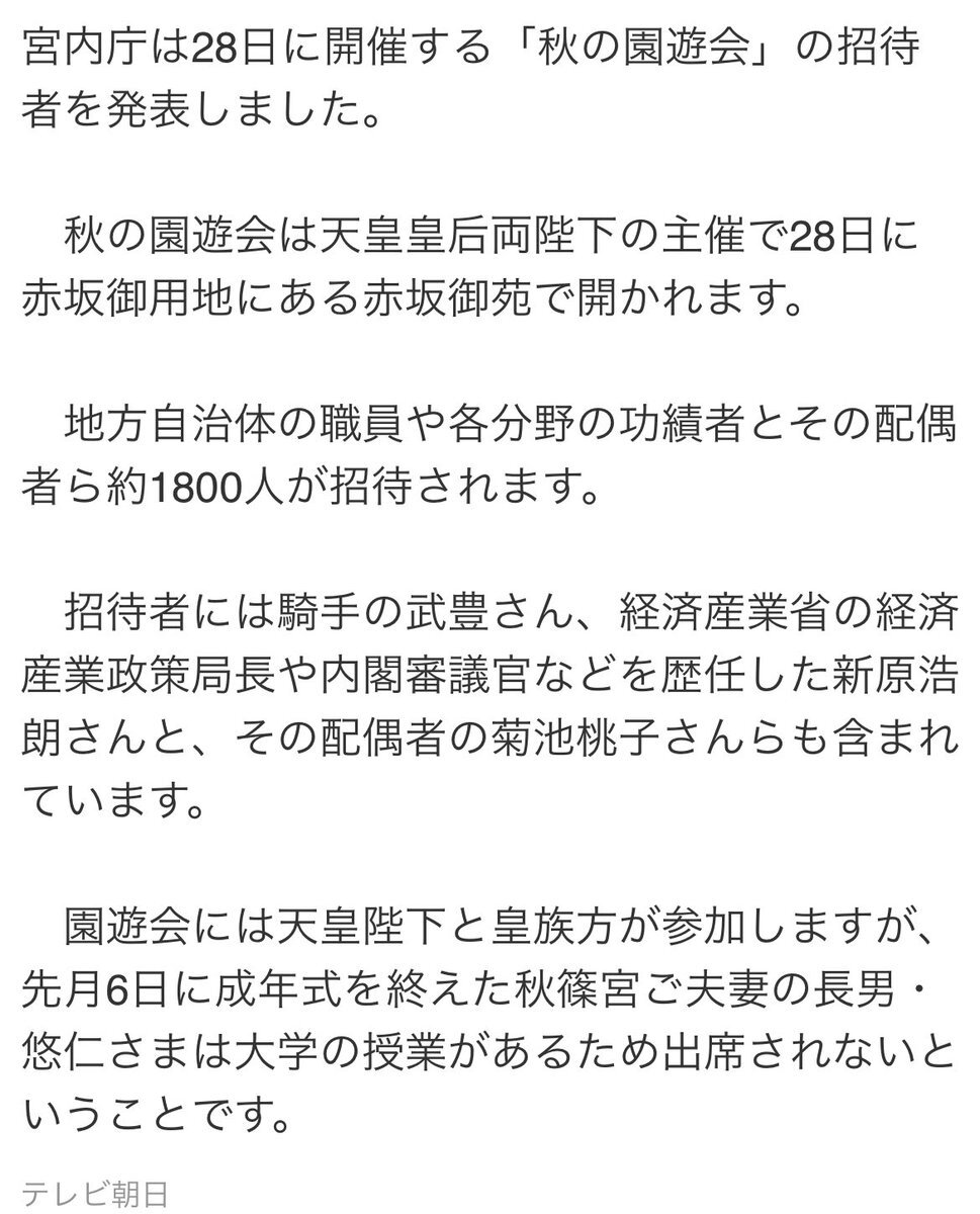 返信先:@k4Duyzor1VawRv7眞子さまも佳子内親王殿下も愛子内親王殿下も学生でなくなってからお出ましされたそうですから。 あのみめ麗しい親王殿下の園遊会お出ましを見たかったですが仕方ないですね。