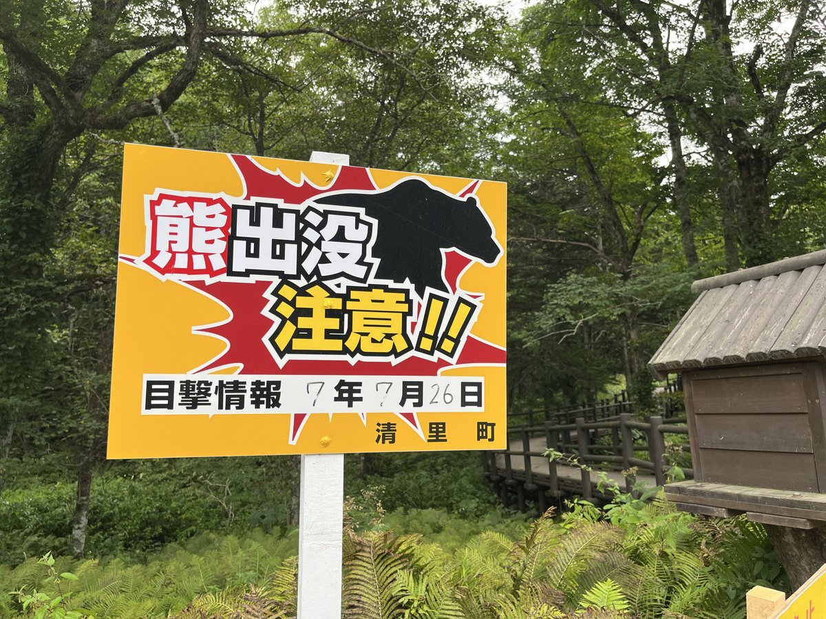 北海道の神の子池もとっても綺麗なところだったけど、ぼっち&入り口にこんな看板あったから早々に退散したよね、あと車道にも普通に熊いた 九州住んでると熊ボケしちゃうからよくない pic.x.com/Q7hcv6OxBx x.com/prompto910/sta…