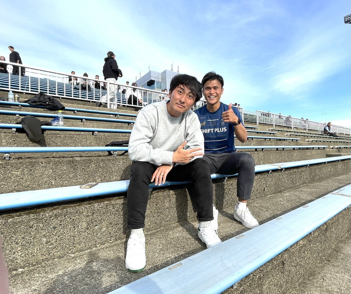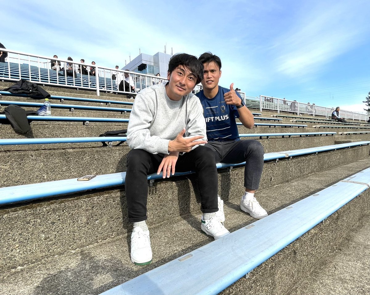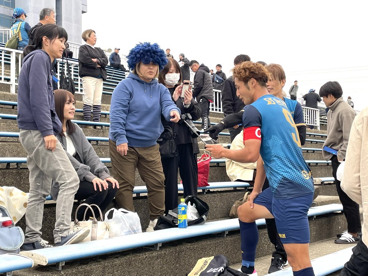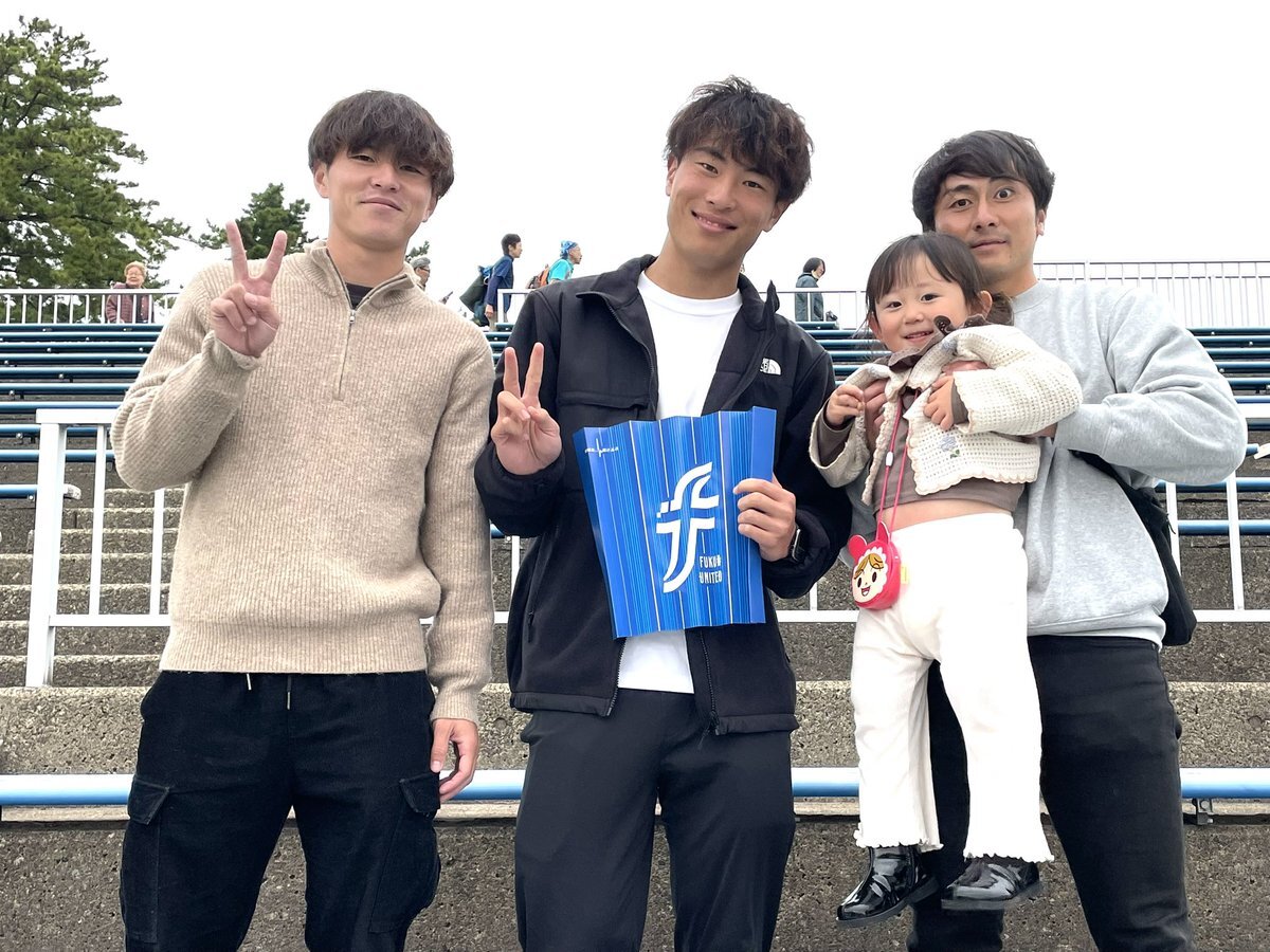 #福井ユナイテッド #北川滉平 選手10番 ファミリーで金土二日間 古巣 #ヴェロスクロノス都農 の応援に駆けつけてくださりアフター練習まで観てくださいました🙇‍♀️💙 右の選手も元都農の #田村健 選手 タムケンさんは金曜は🥁臨時コルリのサブコルリでした👏👏 #地域CL #テクノポート福井 pic.x.com/QTzlmEvnNJ