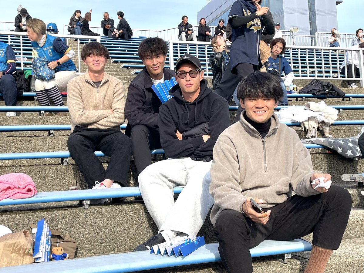 土曜日、いつの間にか #福井ユナイテッド の選手達がたくさん #ヴェロスクロノス都農 チーム応援席に居てびっくり😳😳各チームに応援してる選手達が居るとか? 左から #榎本響 22番 #清水雅仁 2番 #髙貝樹幹 7番 #山本廉 15番 選手達 もう私的に⤴️💙💙😆⤴️ #地域CL pic.x.com/oyLoB6t0Jz