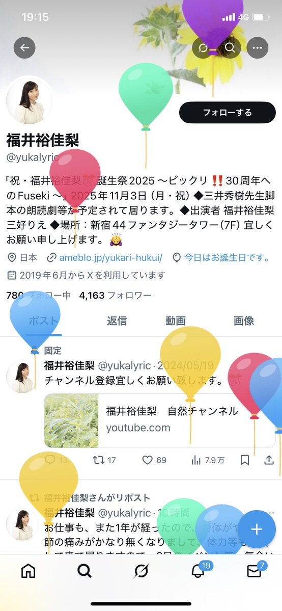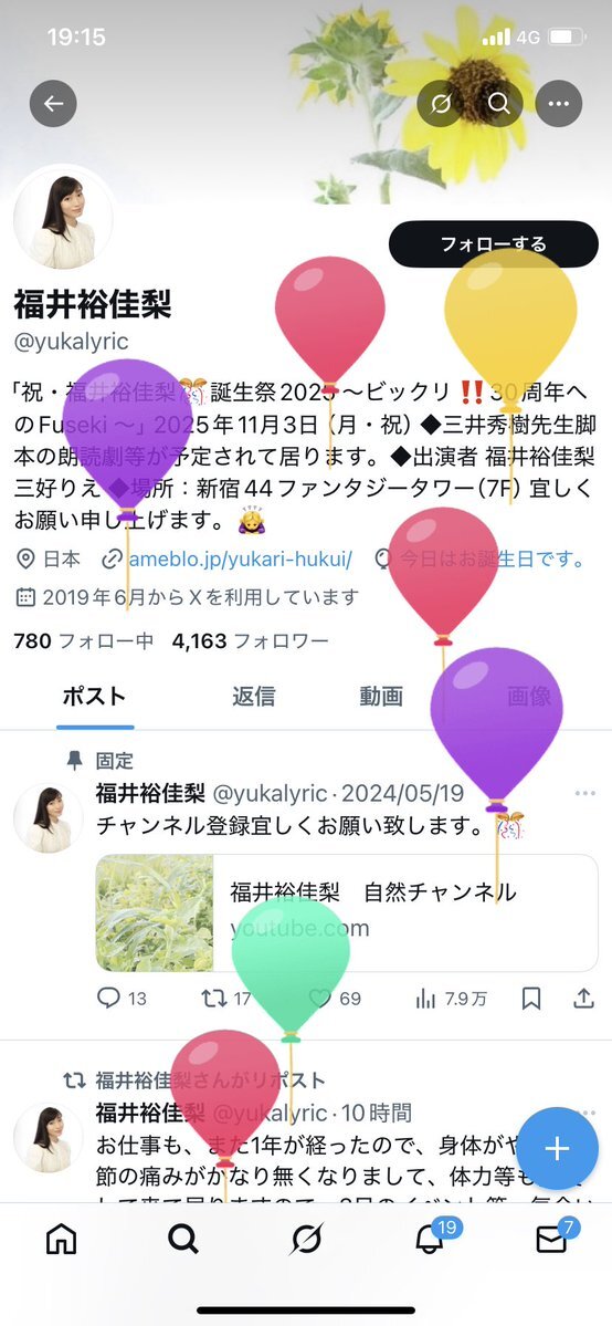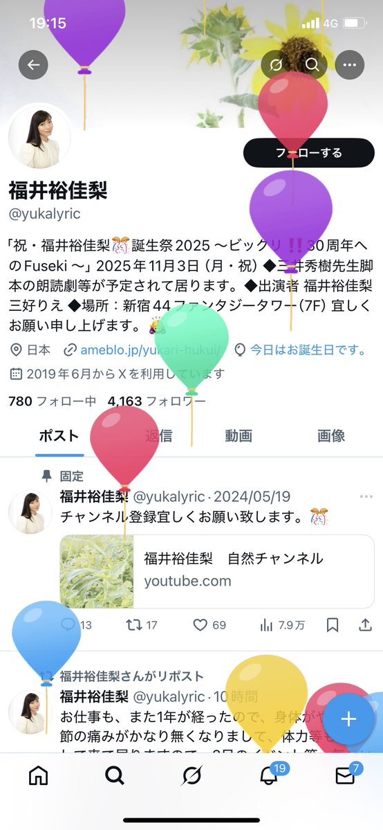 誕生祭のハッシュタグ#福井裕佳梨誕生祭2025を観させて頂くと皆様が感想を書いて下さって居るお方様もいらっしゃって、とっても嬉しいです。✨✨✨ ✨✨ とっても嬉し過ぎてしまいましたので 何名か リツイートさせて下さい。