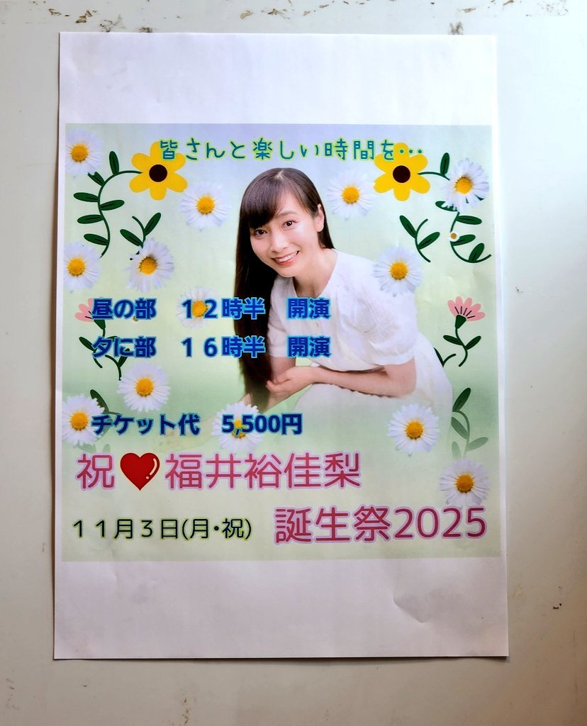 昨日は声優の福井裕佳梨バースデーイベントへ。 相変わらずの裕佳梨さんにほっこり。ゆかりん節、面白過ぎる! 裕佳梨さん、お帰りなさい。 推しを直接祝える喜び!大変楽しいバースデーイベントでした。 癒しと感動をありがとうございます!! 幸多き一年を! #福井裕佳梨生誕祭2025 #いい推しの日 pic.x.com/KwFPribIVB