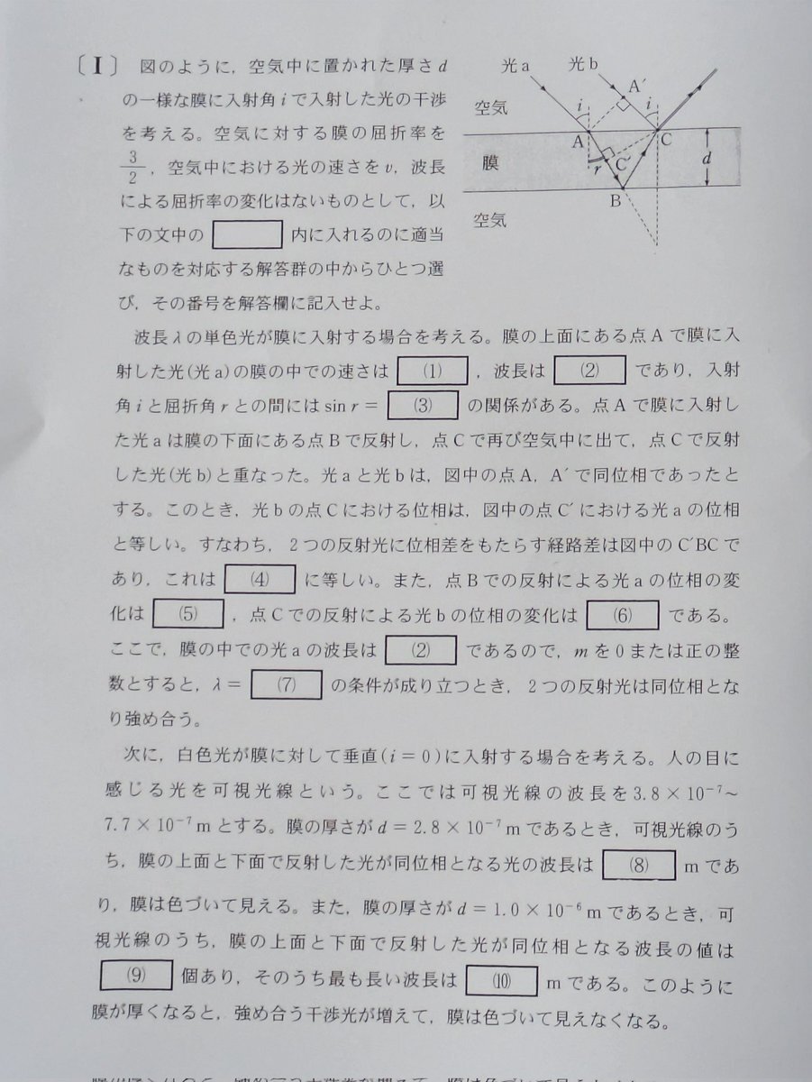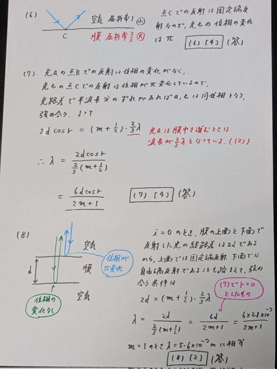 #私大医学部の物理 テーマ:薄膜の干渉 出典:2020 福岡大学 医学部 医学科 Ⅰ (1)〜(8)の解説 ハッシュタグをつけてる「私大医学部の物理」から探して頂ければ, 2018 昭和大学医学部 後期の問題で同じテーマを扱ってますので, そちらもご参照頂きたいです! 屈折の法則については x.com/Shun_Jaga1114/…