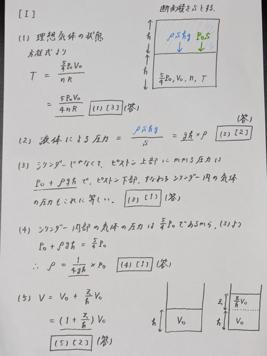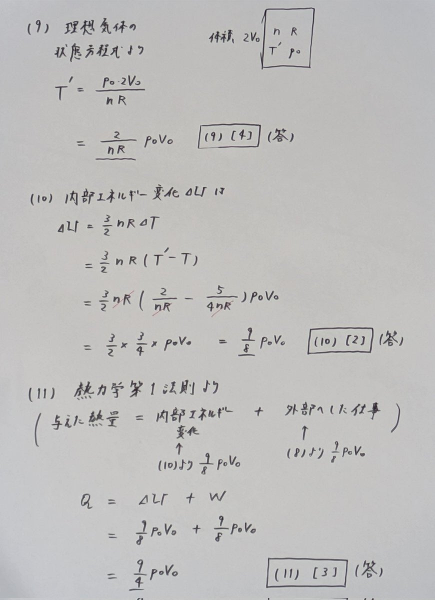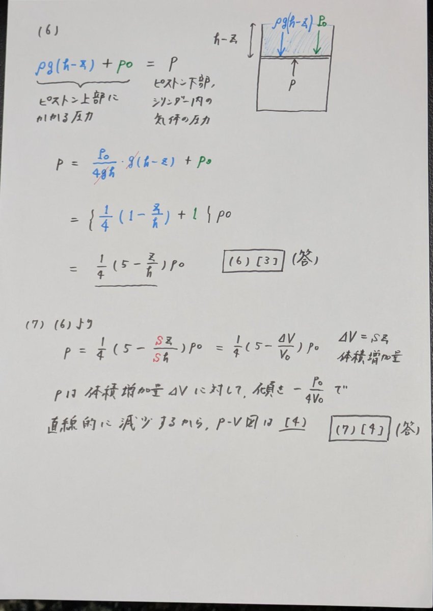 #私大医学部の物理 テーマ:熱力学の基本問題 出典:2021 福岡大学 医学部 医学科 Ⅰ (1)〜(7) の解説 物理は熱力学をほとんど扱ってなかったので, まずは簡単な入試問題から。 (3)は「ピストン上部にかかる圧力」と書きたかったのに間違えて「シリンダー」と書き始めてしまったので, pic.x.com/yKgq3pGfjI x.com/Shun_Jaga1114/…