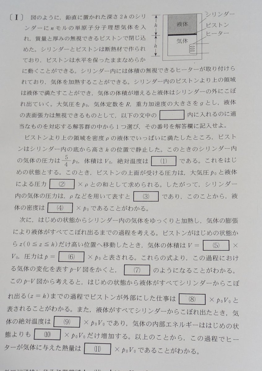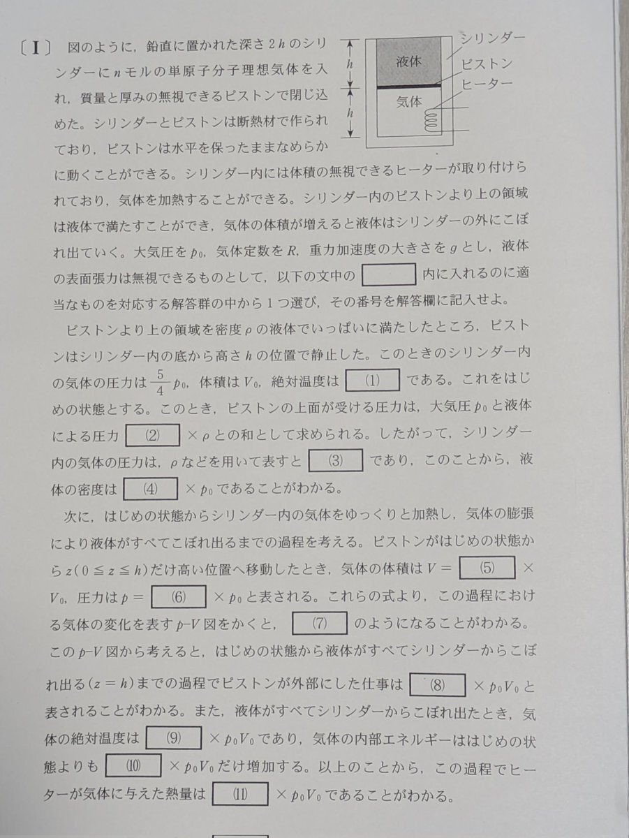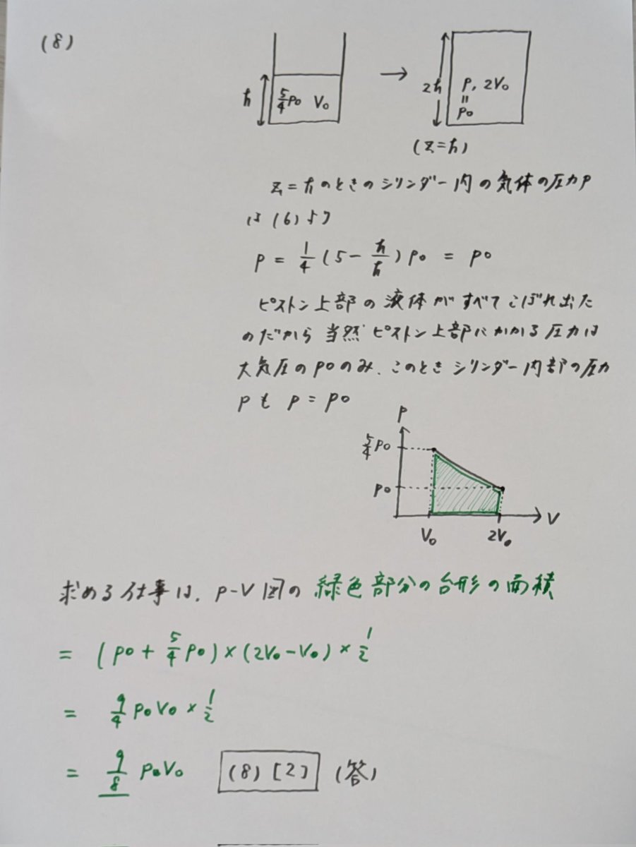 #私大医学部の物理 テーマ:熱力学の基本問題 出典:2021 福岡大学 医学部 医学科 Ⅰ (1)〜(7) の解説 物理は熱力学をほとんど扱ってなかったので, まずは簡単な入試問題から。 (3)は「ピストン上部にかかる圧力」と書きたかったのに間違えて「シリンダー」と書き始めてしまったので, pic.x.com/yKgq3pGfjI x.com/Shun_Jaga1114/…
