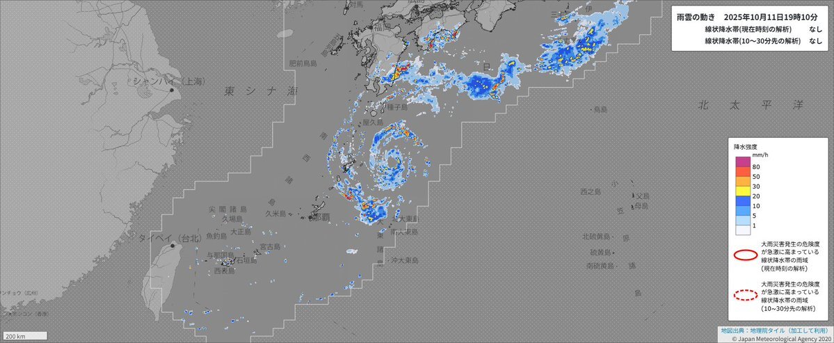伊豆諸島では、9日の台風第22号の記録的な大雨、暴風、高波の影響で、災害の危険度が高まりやすくなっている地域があります。早めの防災活動を心がけてください。沖縄地方と九州南部・奄美地方では、強風や高波、土砂災害、低い土地の浸水、河川の増水に注意してください。 x.com/ippatsu_sendai…