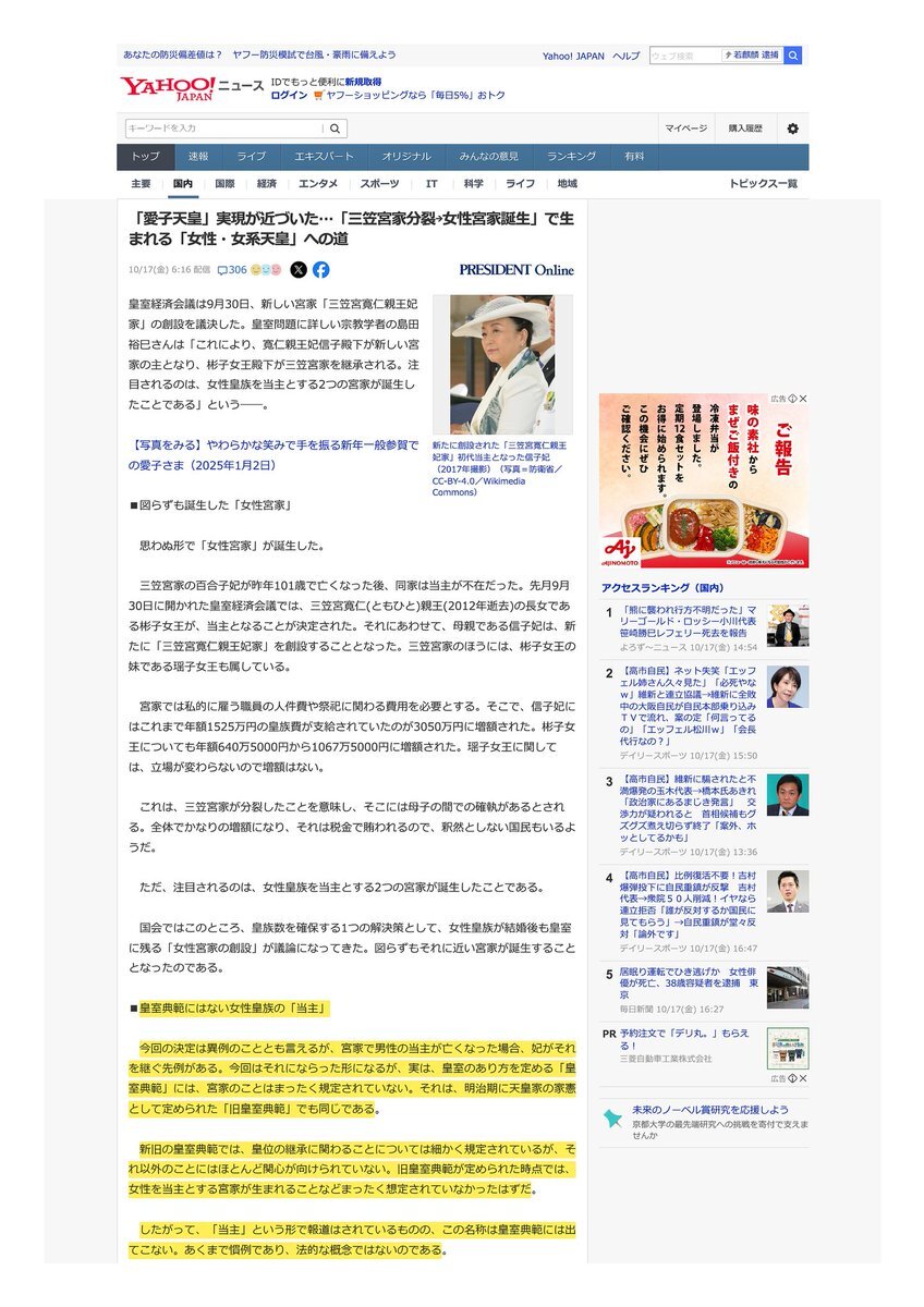 天皇の決定に問題がなく国益適う事を承認し責任を内閣が引き受けるのが国事行為の建て付け 立太子(立皇嗣)の礼は平安の頃から継承者争いの具にならないように決定する儀式です。暫定では無く決定です。 佳子様が旧御仮寓所で暮らしている事を大半の国民が許容していないという事を証明して下さい x.com/ayumuchan3/sta…