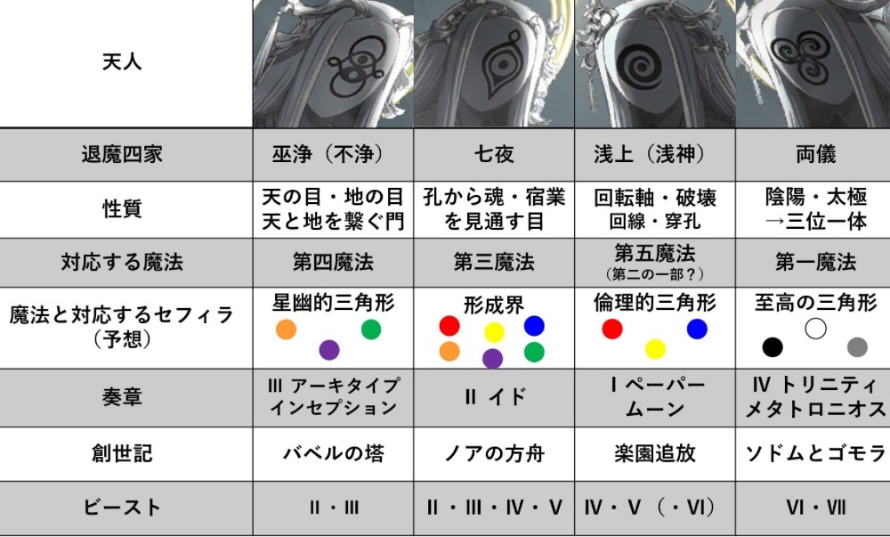 以前、創世記とビーストを対応させたことがあったけれど、創世記と魔法を対応させてからビーストを当てはめてみる。 ・第三魔法 →ノアの方舟(Ⅱ・Ⅲ・Ⅳ・Ⅴ) ・第四魔法 →バベルの塔(Ⅱ・Ⅲ) ・第二魔法(第五) →楽園追放(Ⅳ・Ⅴ・Ⅵ) ・第一魔法 →ソドムとゴモラの滅亡(Ⅵ・Ⅶ) pic.x.com/zIhLO8MZWJ