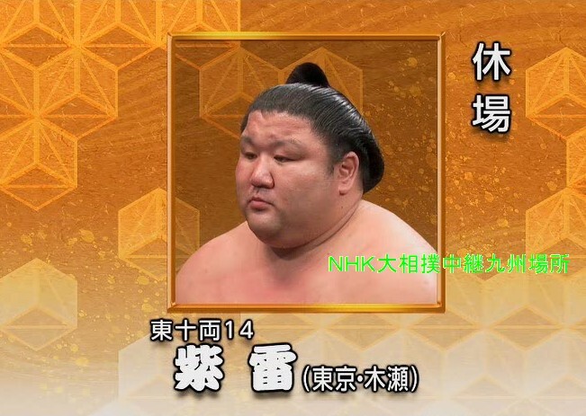 紫雷、休場。 きのう足を痛めて車椅子で花道を下がった。 木瀬親方(肥後ノ海)「左太ももの筋肉損傷。今は冷やして安静にするしかない。再出場はないと思う。まずは治療に専念させる」 〔九州場所十二日目〕 #sumo