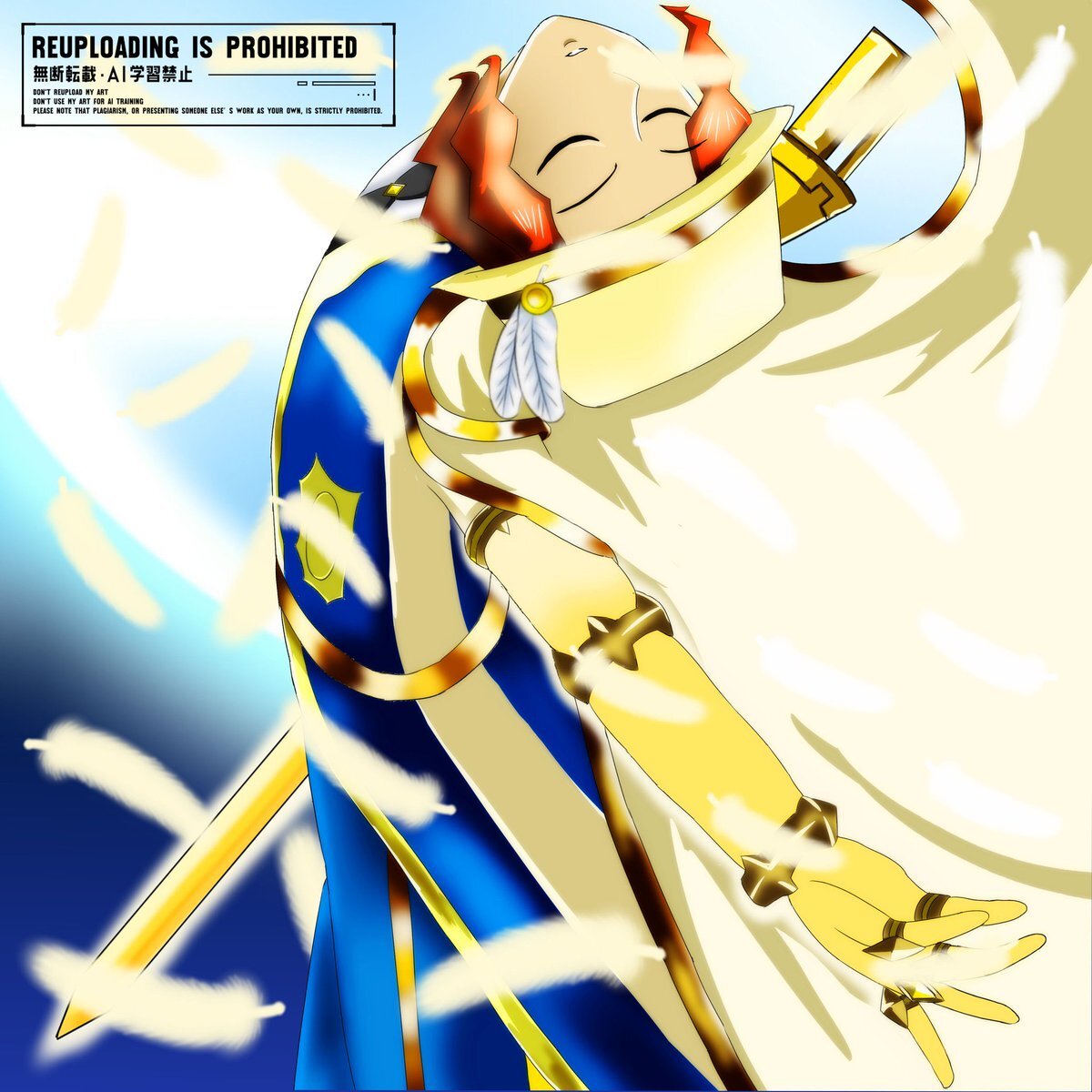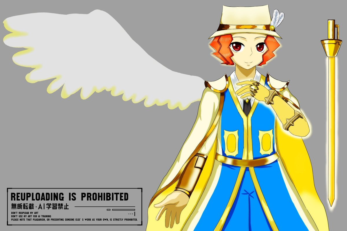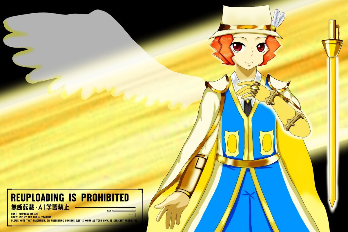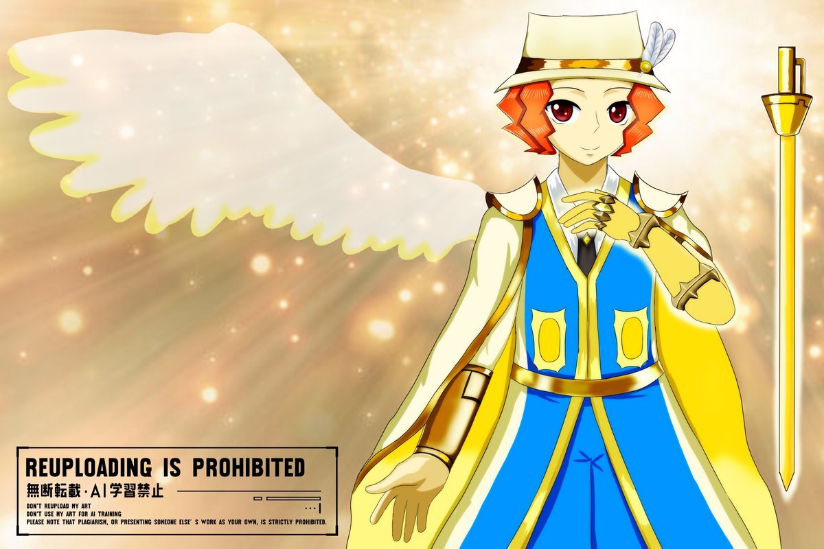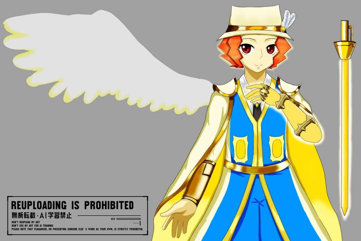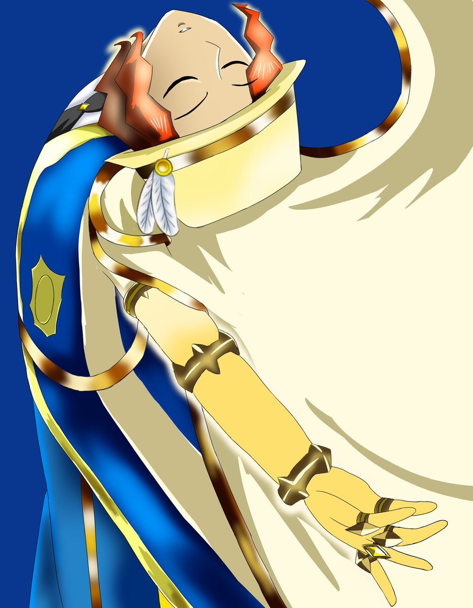 テイルズオブザレイズの精霊装(光属性のアスカ)風ウーノの、新デザイン案。闘牛士の衣装を聖騎士っぽく見えないか、自分なりにアレンジを加えてみた。背景は本家の資料・フリー素材・魔鏡技カットイン風。指輪見えてる状態で描くのは、初めて。 #popn_art pic.x.com/mplCyicqpi