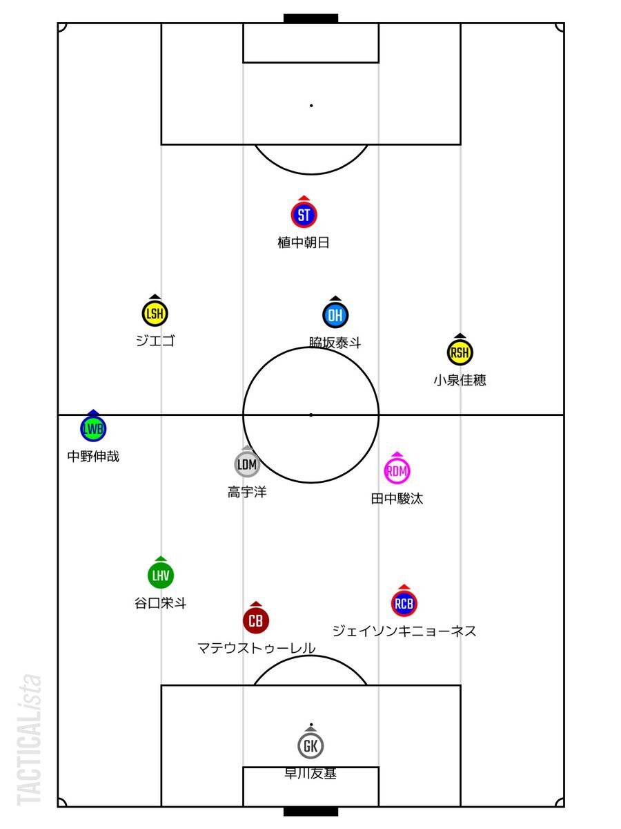 第34節のMyベストイレブン。 早川友基、キニョーネス、トゥーレル、谷口栄斗、田中駿汰、高、中野伸哉、ジエゴ、小泉佳穂、脇坂、植中。 #J1全部見るマン pic.x.com/Xlejaja1yi