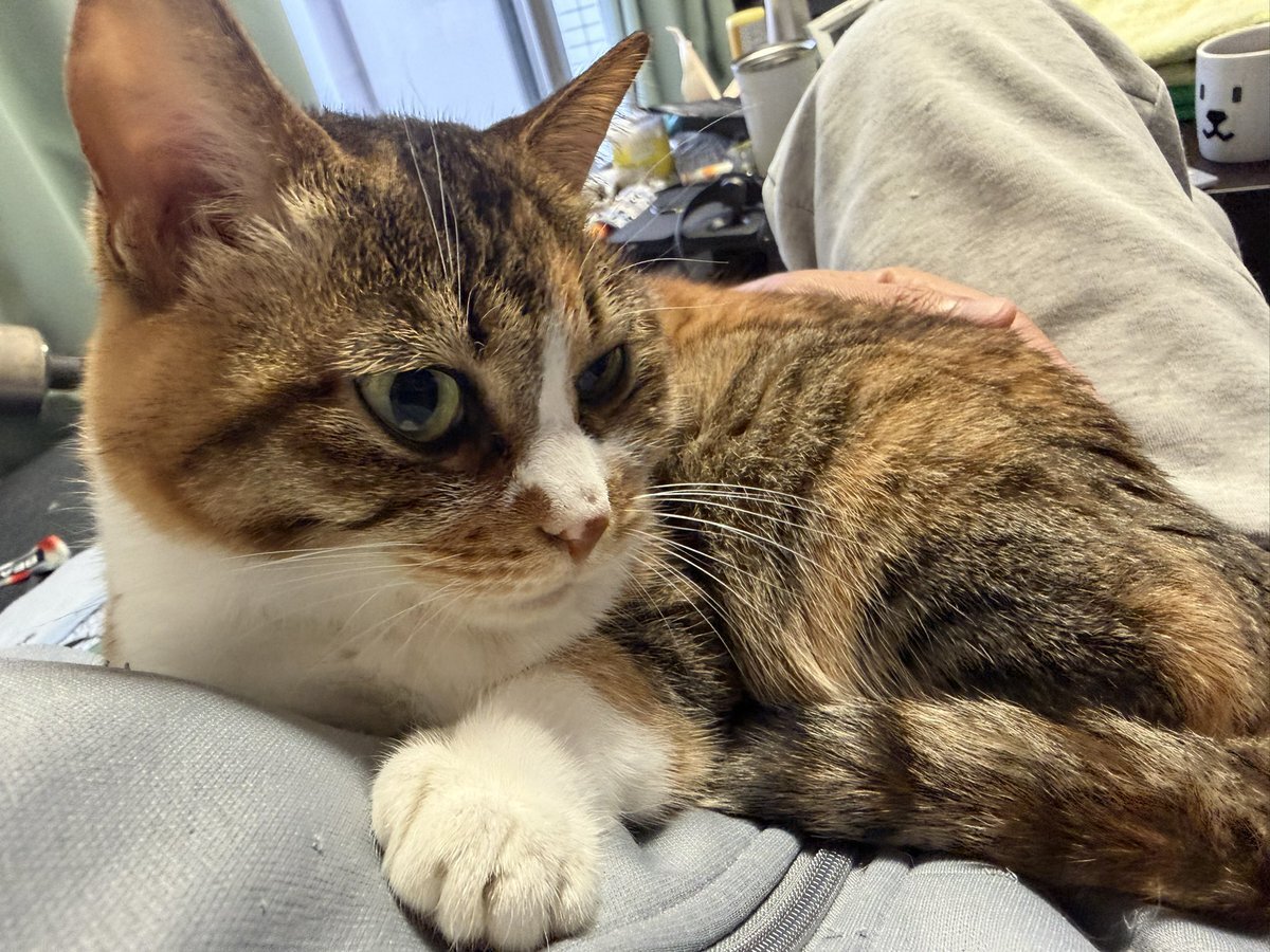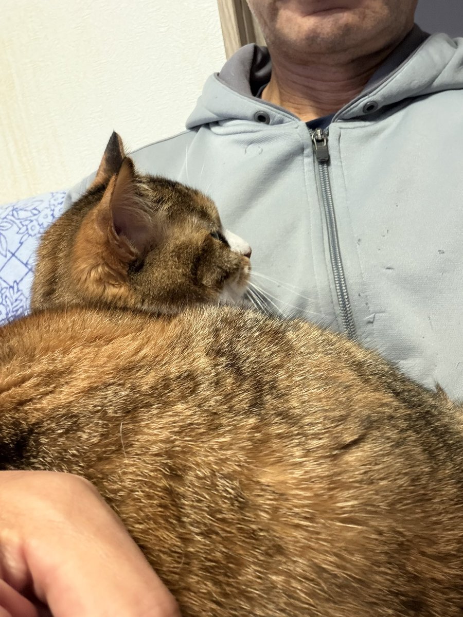 おはようございます😌 腎細胞がん術後定期受診で病院行って来ます 今日もみなさまにとって良い一日でありますように😊 冷え込む朝、三毛子がずっと膝の上 でもこの体勢左腕で支えないとダメなんだよね 左腕が痺れてます pic.x.com/Av8nKzYjeB
