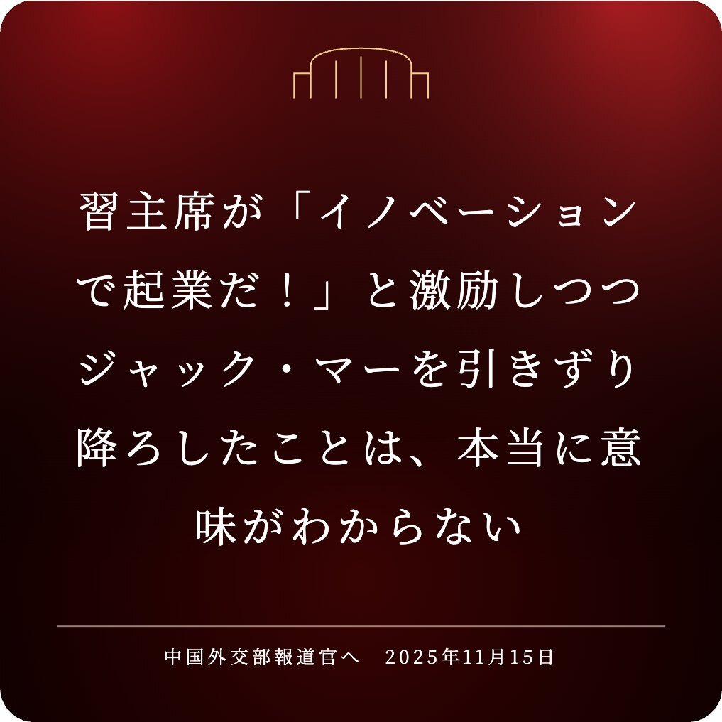 ・中国経済は民間で回ってるのに、習近平がアリババなど大手を引き摺り下ろしたせいで冷え込んでる。 これについては自分も心底訳がわからないと思ってたけど、やっぱり興梠先生もそう思ってるよね.... pic.x.com/Ajx3ctiKp7